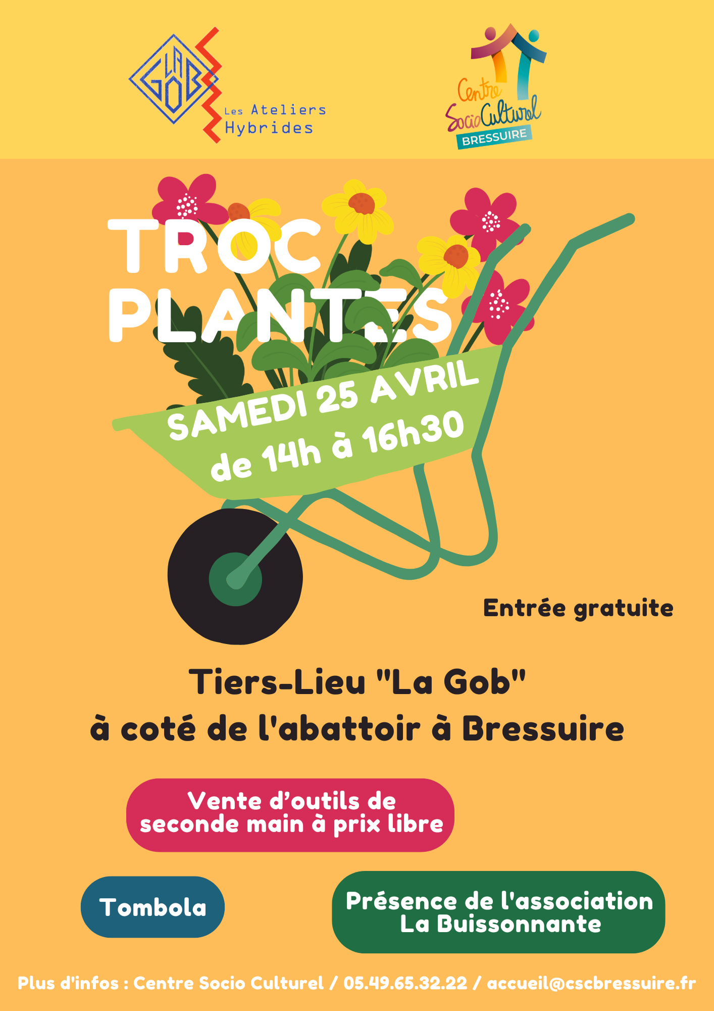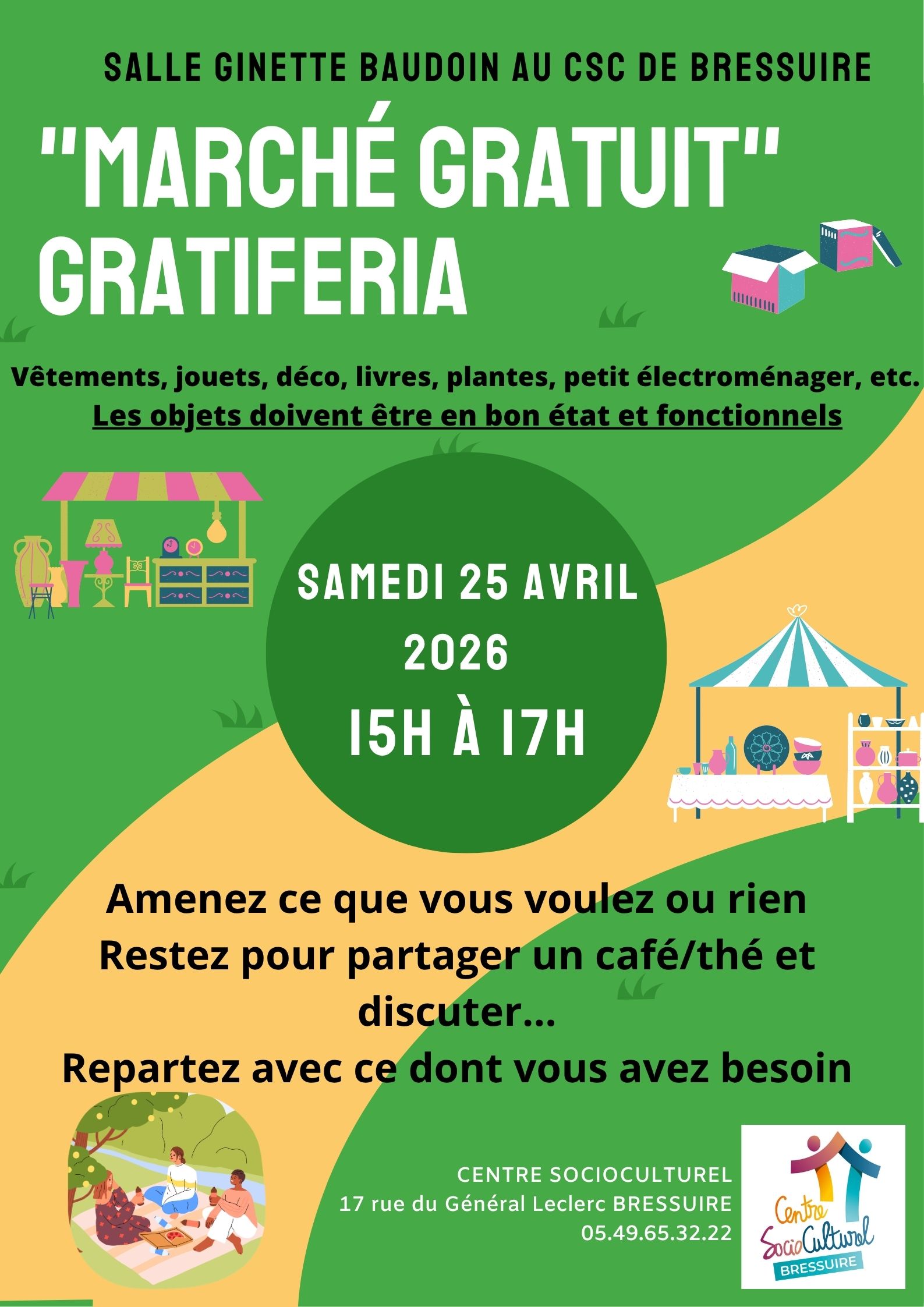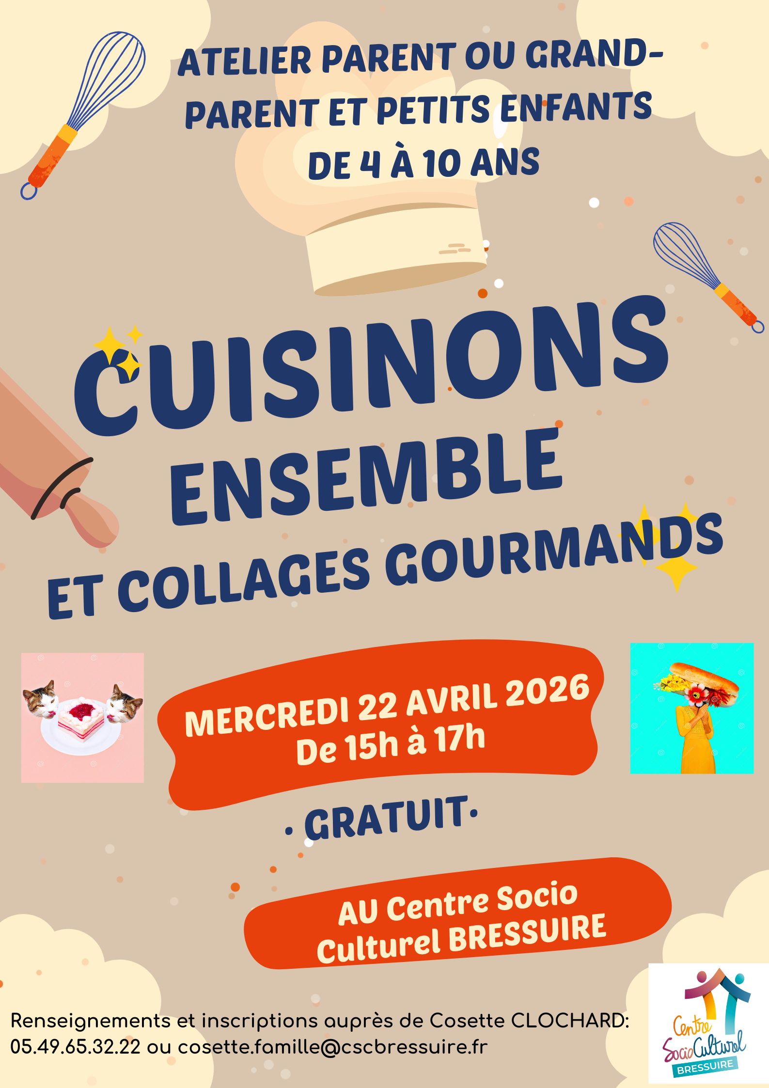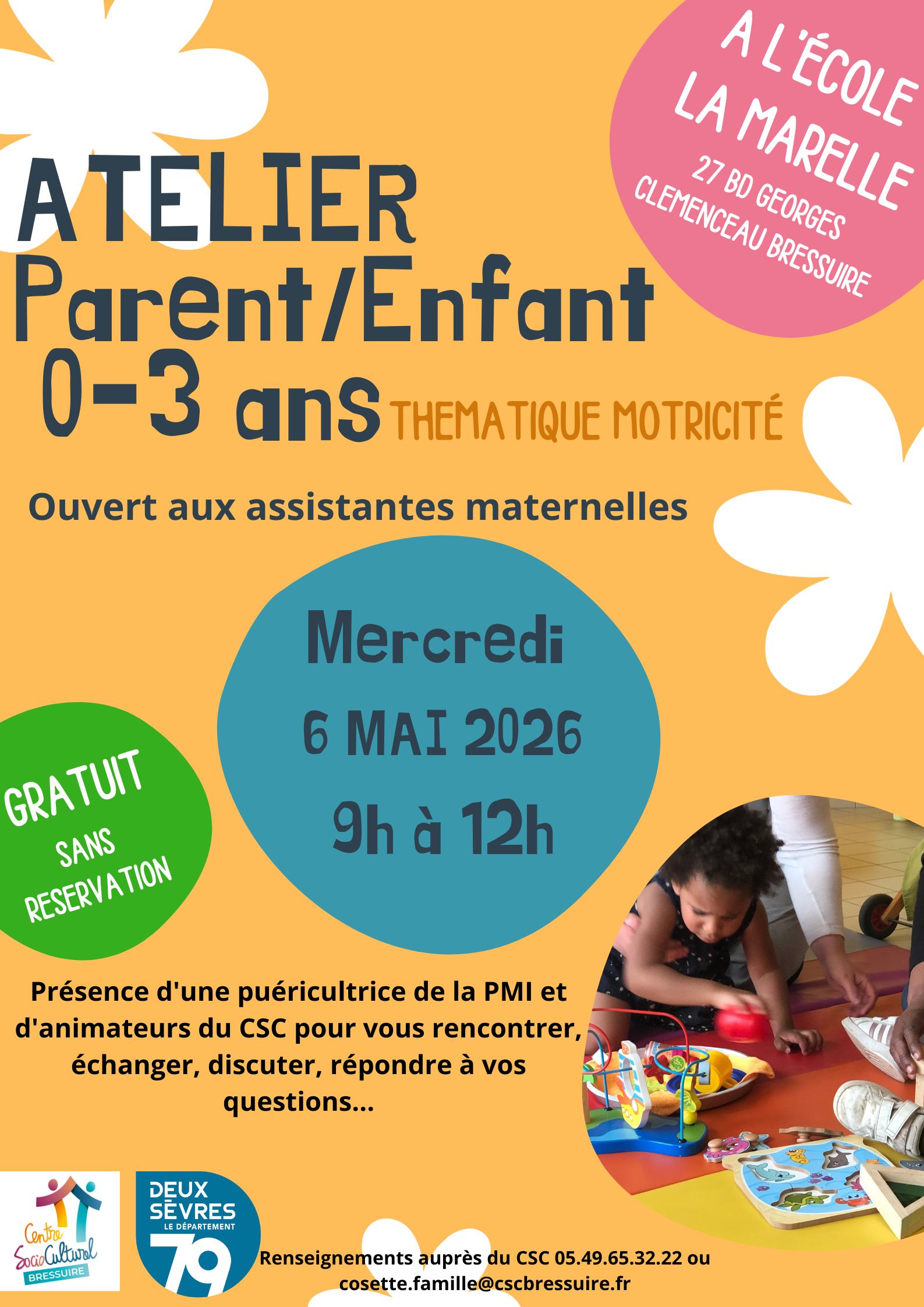 GRATUIT, ouvert à tous, places limitées, sur inscription auprès de Stéphanie ou l'accueil au 05.49.65.32.22